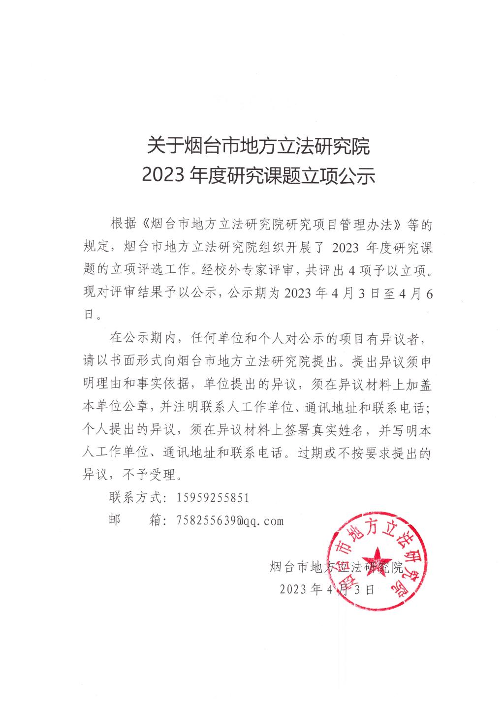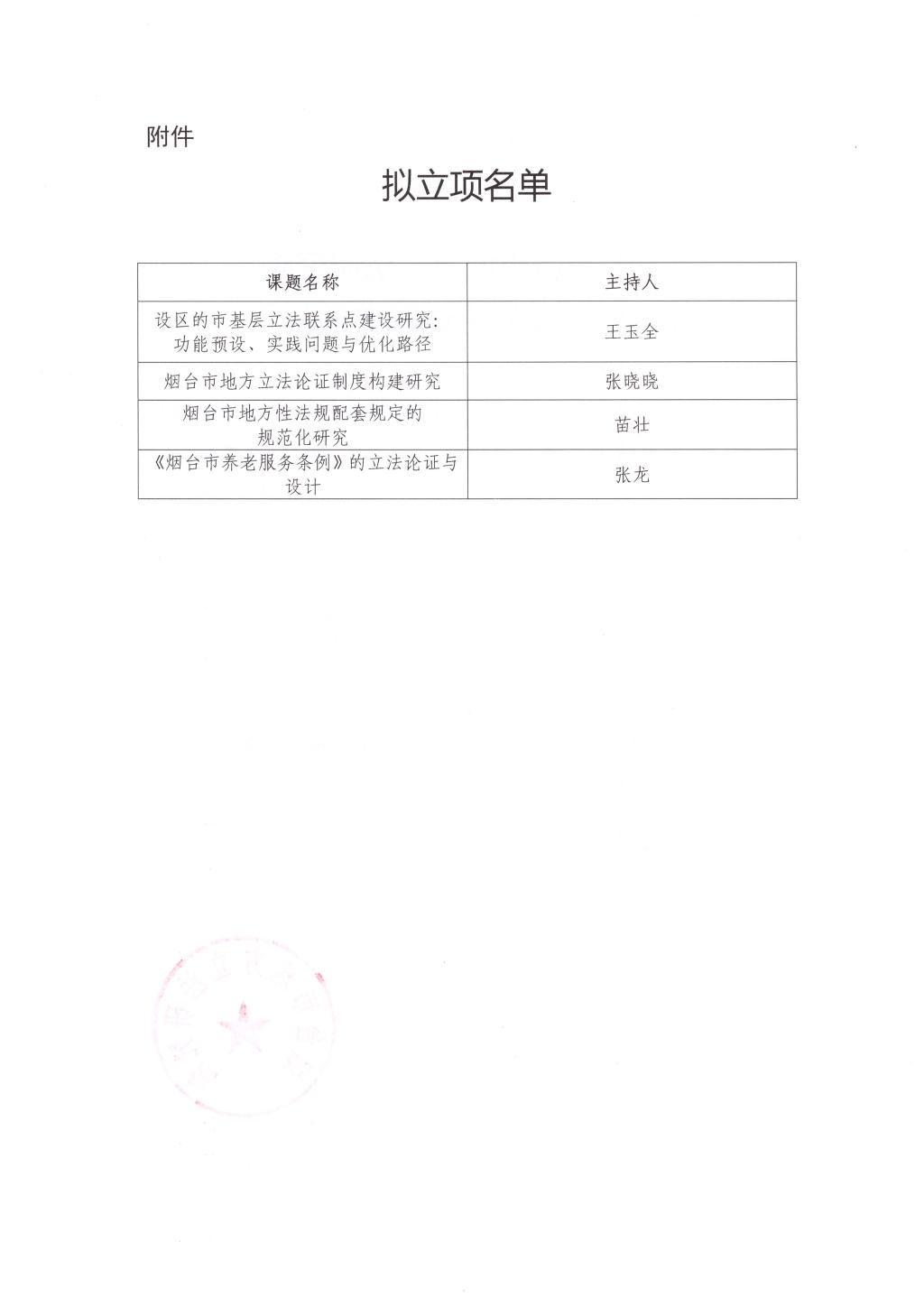 关于烟台市地方立法研究院2023年度研究课题立项公示