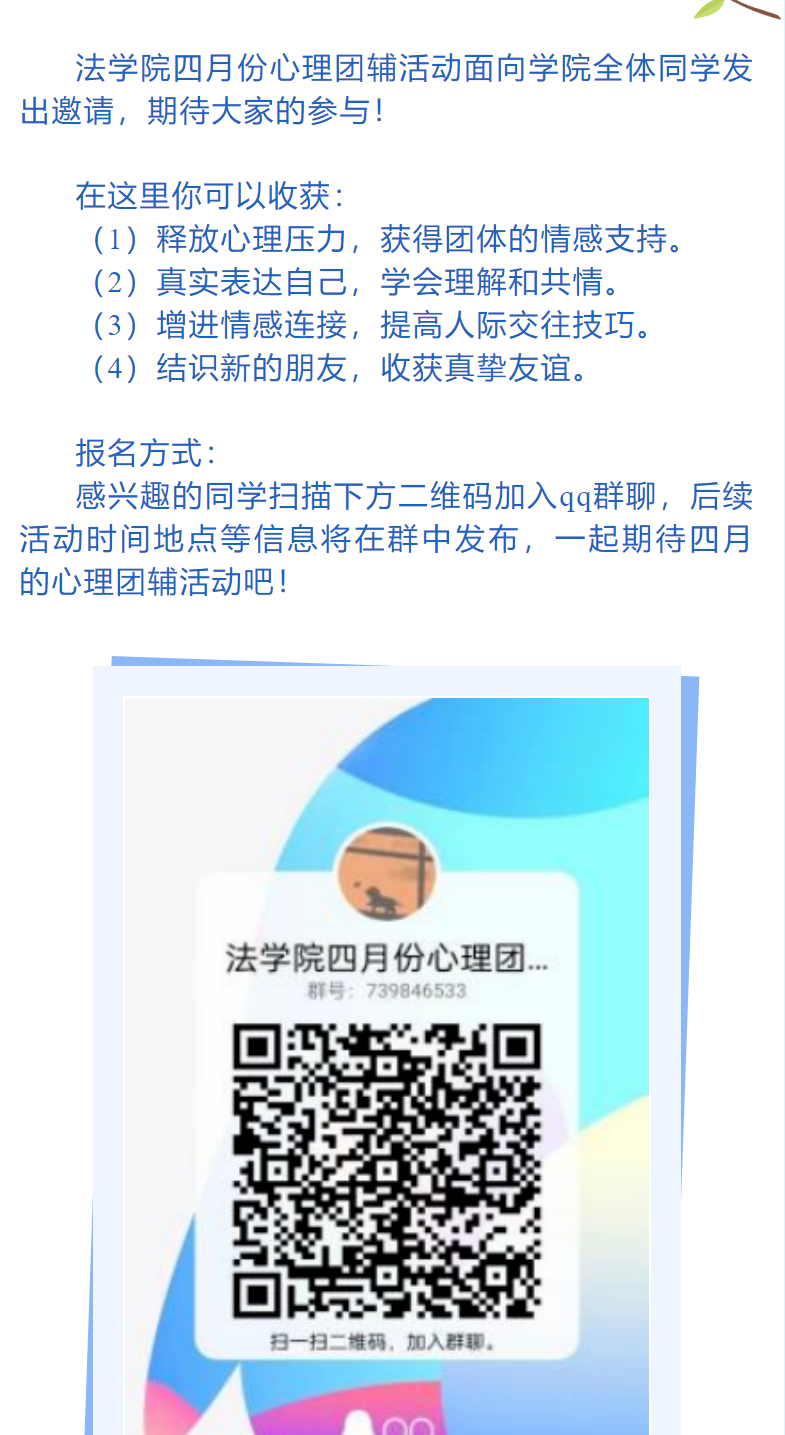 本学期第一次心理团辅活动圆满结束!大家在体验中感悟,在感悟中成长,一同度过了一个快乐充实的下午!