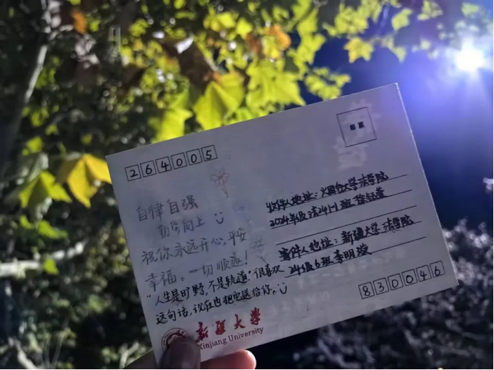 一张小小的明信片从新疆飞来,是思念的具体化,也是打开时光宝盒的钥匙。已些许泛黄的记忆如电影般放映,历历在目。高中三年我们是并肩作战的战友,在名为高考的战场上厮杀。所积累下的情谊让我们在分别后格外想念对方。“飞鸽传信”不仅让我们体验了一把“纸短情长”,也是各高校尼克成人网
