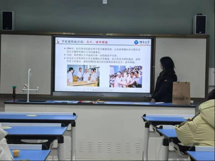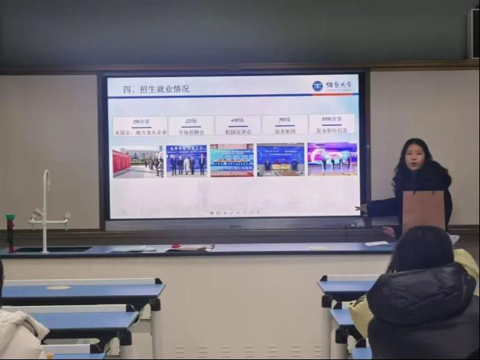 他们从学校简介、师资力量、校园环境以及学校专业等方面详细介绍了烟大的基本情况。此外,宣讲人们还分享了自己在烟大的校园生活,从藏书丰富的图书馆到丰富多彩的校园活动,让大家感受到烟大浓厚的学术氛围和多彩的校园生活。