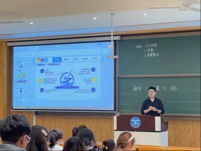 刘运正介绍了学院社会实践发展状况与学院教师指导方向、项目企划,并针对同学们在社会实践中常见的选择困境做出解答。他提醒同学们可以通过端正参加动机、寻找指导教师、明确选题、组织团队等方面为社会实践赋能。最后,刘运正向同学们强调了课题选择的重要性以及研究角度的关键作用。在问答环节中,同学们踊跃提问心中疑惑,老师全面解答、指点详尽。