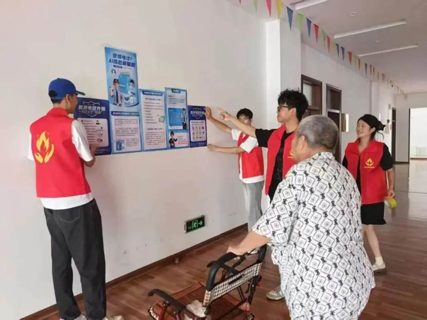 张贴时,成员们特意选择老人活动频繁的区域,如餐厅门口、活动室走廊。每贴一张海报,就有志愿者为围拢过来的老人讲解。在“养老诈骗”海报前,成员结合本地发生的诈骗案,剖析诈骗分子如何以“养老项目投资”“养老床位预订”为名,骗取老人毕生积蓄,听得老人阵阵叹息,也让防诈警惕性深入人心。