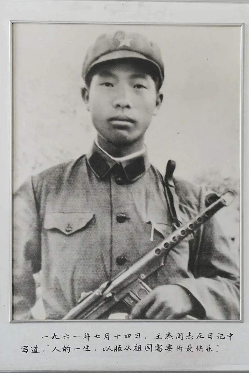 场馆的下一部分介绍了王杰的生平。展馆通过场景复原、日记摘抄、课本收集等多种形式,展现了他从小学时拾金不昧,到长大后毅然放弃高中入学机会参军入伍,在学习过程中始终怀揣的爱国热情,以及其成长时的艰苦生活环境,生动诠释了王杰“一不怕苦,二不怕死”精神的形成历程。王杰在日记中写道,“为了党,我不怕进刀山入火海;为了党,哪怕粉身碎骨我也心甘情愿”,字里行间尽显忠诚与担当。