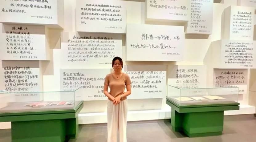 展馆最后部分展现了“两不怕”精神的时代传承。这里陈列着毛泽东、周恩来等老一辈革命家号召学习王杰精神的题词手稿,以及党和国家历届领导人的相关指示。通过大量图文资料和影像记录,呈现了半个多世纪以来,该部队官兵及社会各界学习践行王杰精神的生动案例。实践队在现场观看了被王杰掩护幸存的民兵李彦清老人(时年19岁)的采访视频。老人清晰回忆:“炸药包冒烟瞬间,王教员大喊‘快闪开’,同时猛扑上去。爆炸后,我脸上身上都是他的血...他救了我们12条命。”老人哽咽着叮嘱观众:“‘两不怕’精神是用命换来的真理,年轻人一定要接住!”