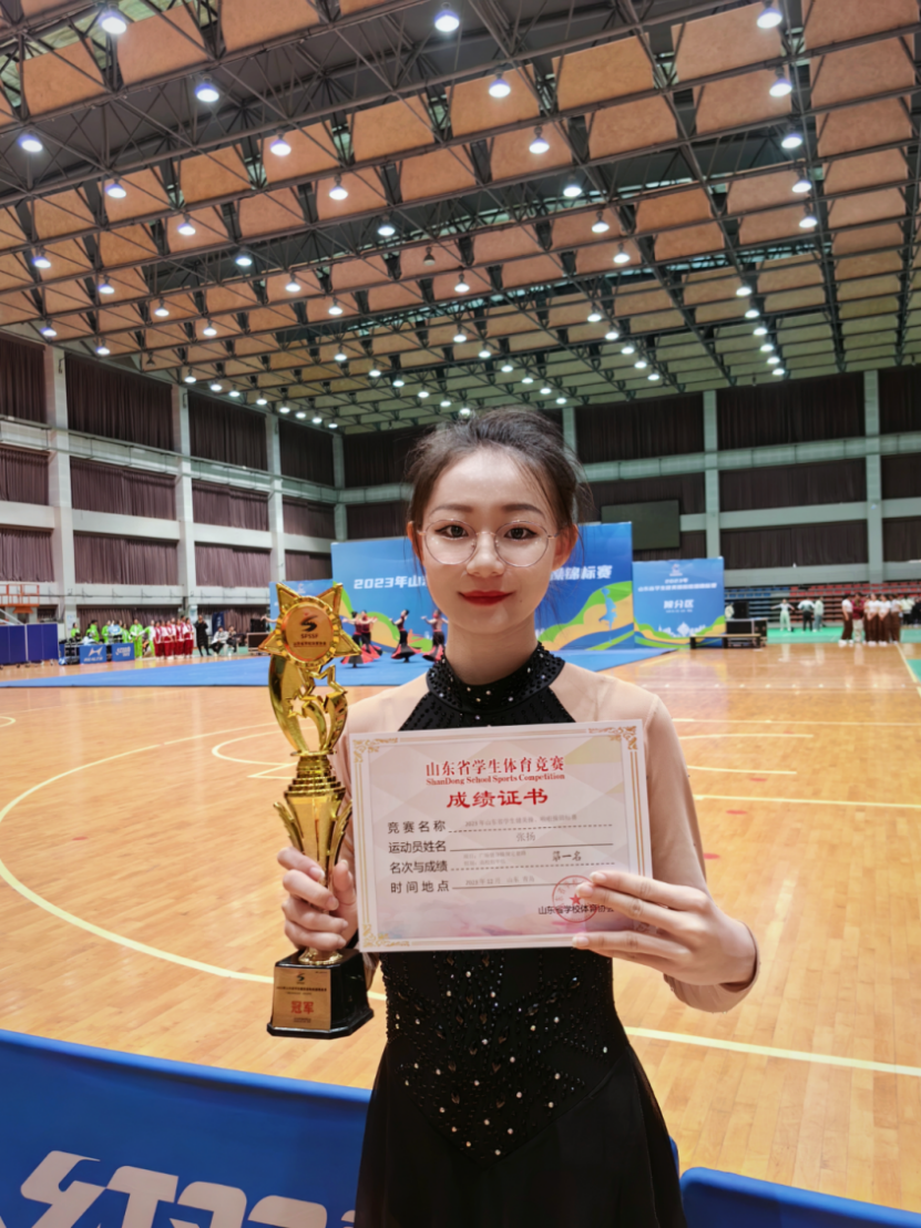 2024年春季运动会女子三级跳远第五名等成绩。与此同时,她加入校啦啦操队,获得“2022—2023年度全国啦啦操俱乐部联赛(烟台站)第一名”“山东省学生健美操、啦啦操锦标赛 集体花球自选第一名”等大小奖项十余项。“训练备赛的过程无疑是辛苦的,但为热爱而与同伴一起奋斗的经历确是让我感到无与伦比的幸福和满足,也使我收获了不怕吃苦、迎难而上的勇气与力量。”她如是说道。