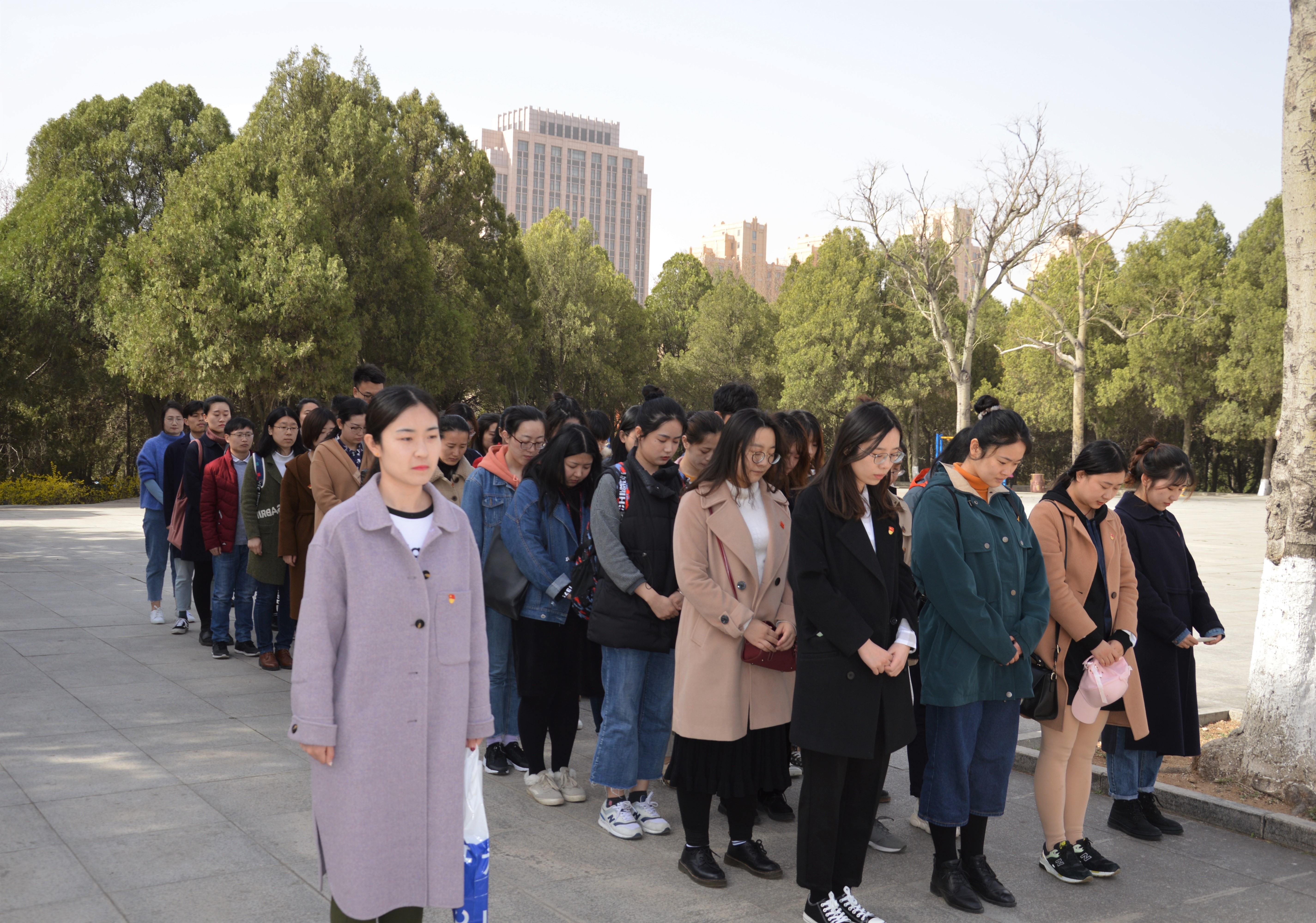 8时30分,祭扫活动正式开始。全体党员在革命烈士纪念碑前列队肃立、神情肃穆。党员拿起饱含对英烈的敬仰与思念的花束,缓步走向烈士纪念碑,将花束摆在碑前。随后全体闭目默哀,场面庄严肃穆。走近英雄纪念碑之后,党员们举目瞻仰,感受先烈们永不褪色的革命精神,相信红色基因必将永续传承。