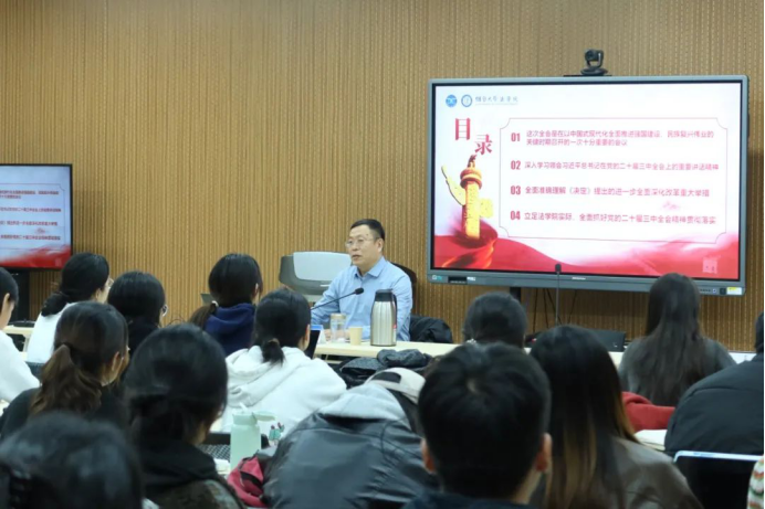 党的二十届三中全会2024年7月15日至18日在北京召开。此会议在以中国式现代化推进强国建设、民族复兴的关键时期召开,是全面深化改革、推进中国式现代化的总动员与总部署。段志国书记以习近平总书记在党的二十届三中全会上的重要讲话精神为切入点,深入浅出地引导学生深刻认识全会以来党和国家事业取得的重大成就,让尼克成人网