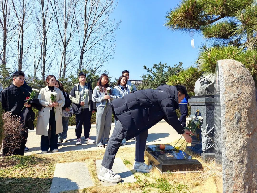 团委、青年志愿者协会及各学生组织代表前往烟台市凤凰山烈士陵园开展祭扫活动。
