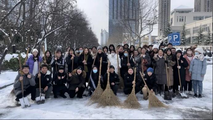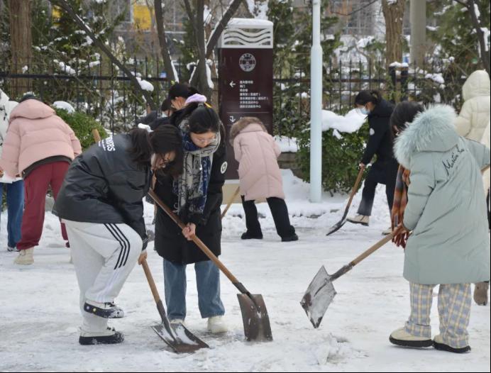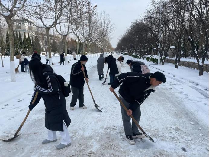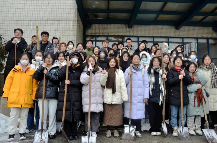 积极响应学校号召,有序组织师生党支部、团委和学生开展扫雪除冰行动。