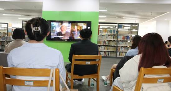 捐资设立阅览室的过程,展示了揭牌启用仪式的相关活动图片,并播放了中央电视台《国家记忆》栏目为张晋藩教授制作的《传薪者:法史人生》专题片。随后,两岸学生进行了读书交流活动。大家畅所欲言,就学习和生活展开热烈讨论,增进了相互了解和友谊。