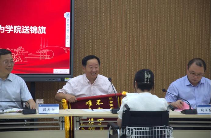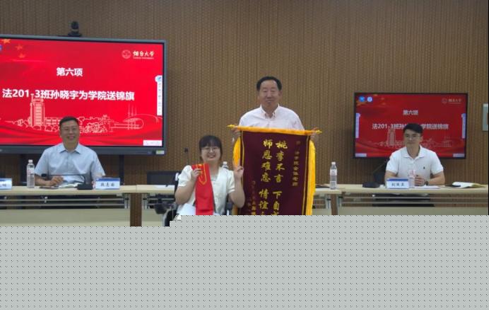 2024届毕业生代表法201-3班孙晓宇同学向学院送上满含心意的锦旗,感谢学院对所有学子的关心、呵护与培养。