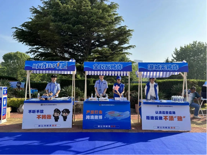 联合烟台市公安局刑侦支队反诈中心、治安支队开展拒赌反诈一体化宣传活动。