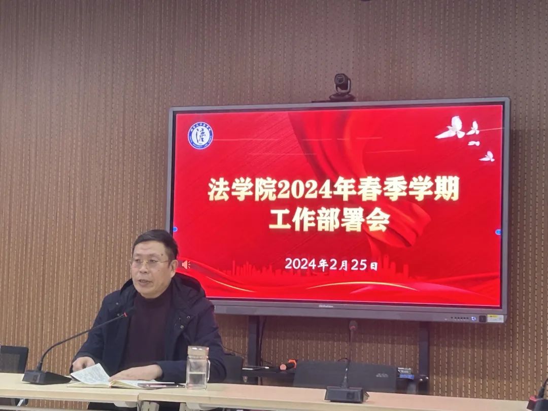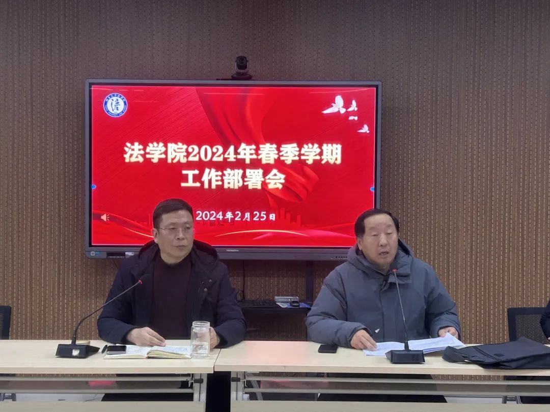 段志国强调,2024年是学院发展机遇与挑战并存的重要时期,要对各项工作任务高度重视、认真谋划,压实主体责任,促进成果产出,在党和国家高度重视新时代法学教育的有益机遇期乘势而上,坚持法学教育科研工作与国家社会发展的战略需要紧密结合,根据工作实际对标对表,锚定目标、明确方向,让优秀学生成长成才,让智慧成果充分涌流,打造学术强院、文化强院,助力学校高水平大学建设。