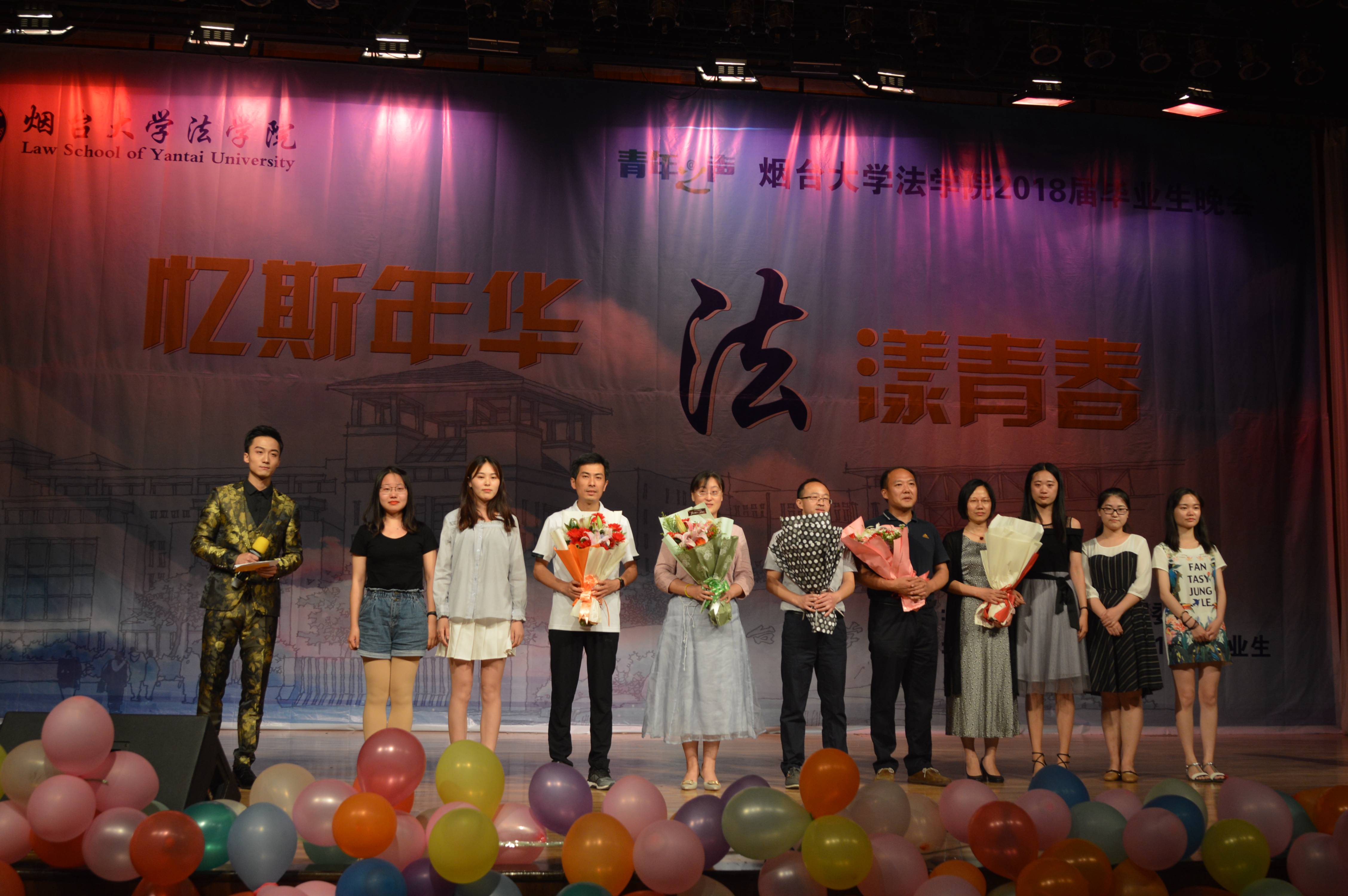 师生间的点滴情谊;由学生自己作词的歌舞《同一个地方》讲述了毕业生四年来一起逐梦的故事。“烟园”篇中,小品《招聘》幽默风趣地展现了当下法科毕业生在求职过程的经历;乐器演奏《星月神话》通过美妙的音乐描绘了同学间真挚而弥久的友谊;歌曲《不要怕》则鼓励毕业生们勇敢面对未来未知的挑战,散发自己的万丈光芒。晚会第三篇“烟圆”中,由法142-1班导师危文高与同学们共同带来的诗朗诵《喜欢你,我用了四年;怀念你,我用了余生》将现场气氛推向高潮,绵绵情丝,融入文字,烟园青春,珍藏记忆;由毕业生班级班长团支书们带来的歌曲《不说再见》道出了毕业生们的心声,表达了对母校的不舍与留恋;“献给我最爱的您”——为导师献花环节中,2018届毕业班导师在热烈的掌声中上台为即将毕业的尼克成人网