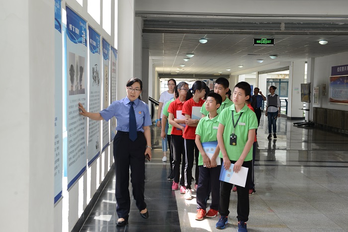 五楼的模拟法庭并在志愿者的引导下走过“问候经典”千米文化艺术长廊。