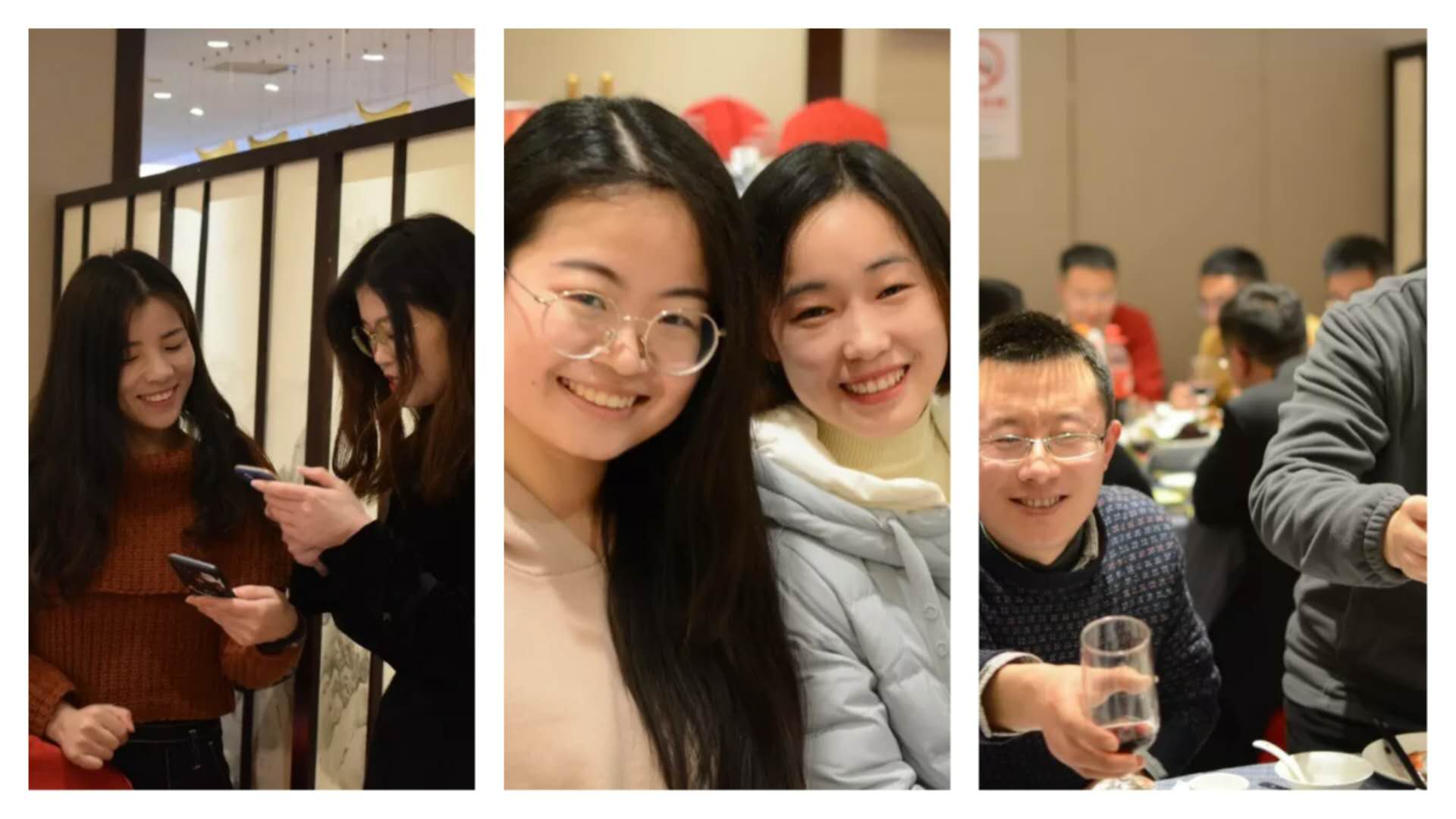 为了这次相聚,新老校友齐心协力,用了很多心思、做了很多事情。95级姜林和03级刘永涛一起出谋划策,操办了菜肴酒水。会场入口的幕布上,放映着韩秀艳和王铭凯精心制作的PPT,里面展现了烟大的昨天与今天。8张桌子,新老校友们坐得满满当当。平日里,校友们或忙于工作家庭,或忙于进修学业。是这次相聚,让许多校友,有机会再一次相见、有机会第一次相识。