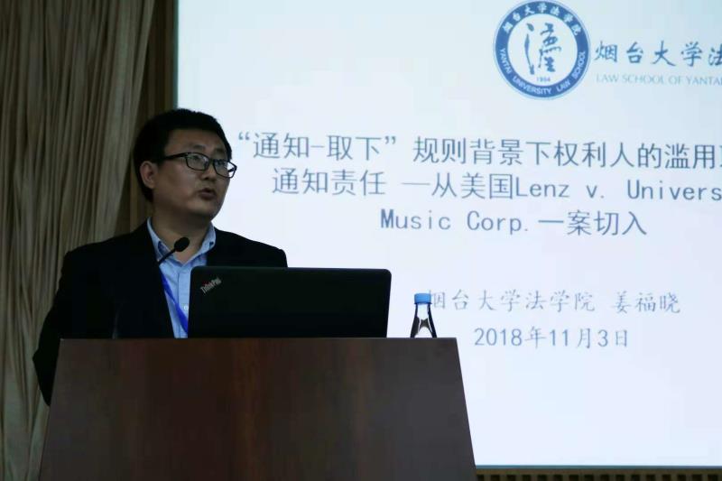 教师姜福晓博士应邀参加此次年会,并在会上作了《“通知—取下”规则背景下权利人滥用取下通知的责任》的主题发言。