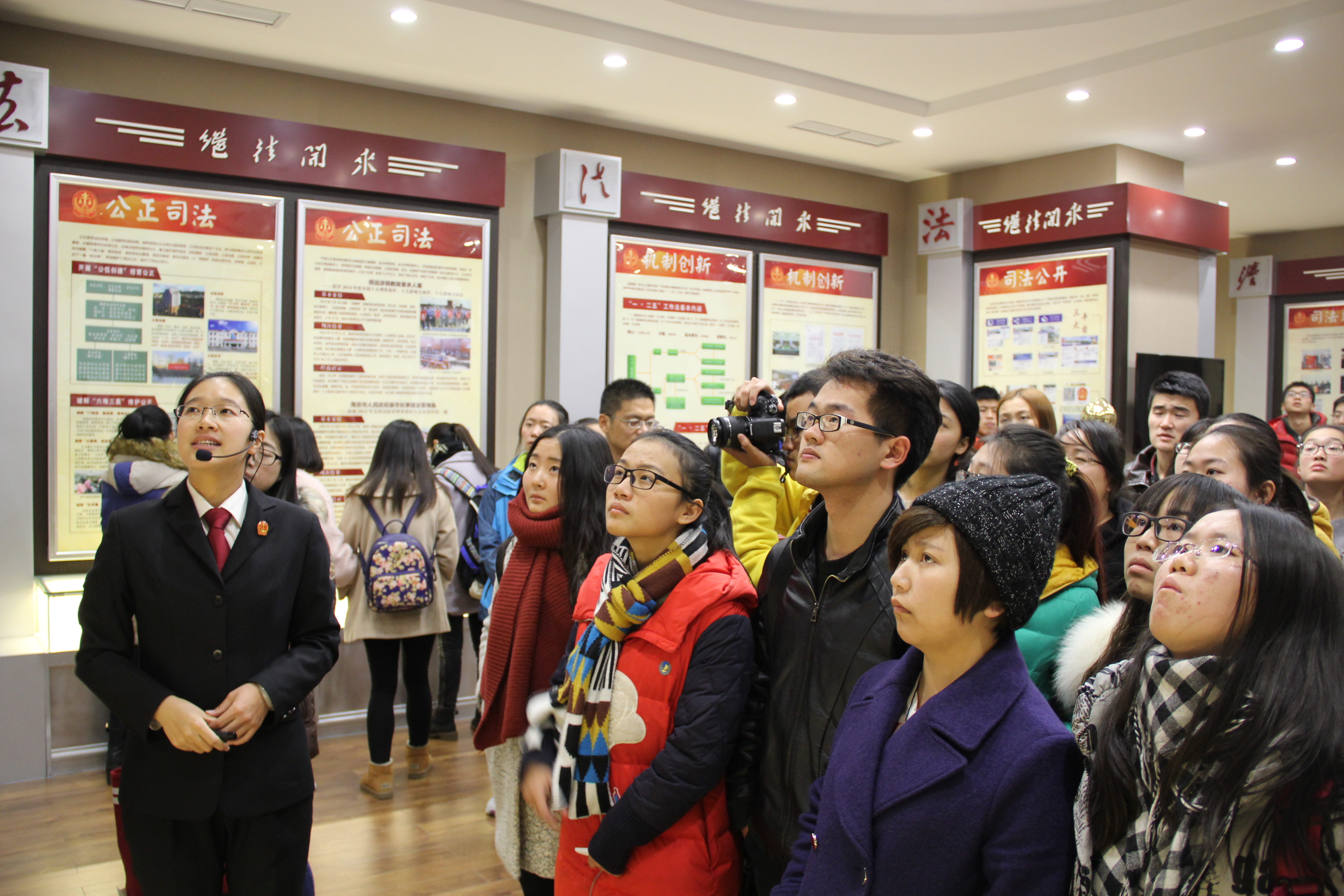 12月2日下午,50余名学生共赴烟台市中级人民法院旁听了一场案件的庭审。零距离接触“民事立案”“商事立案”“再审立案”等工作窗口,参观了烟台市中级人民法院案例文化长廊、优秀法官展览、院史陈列馆等场馆。