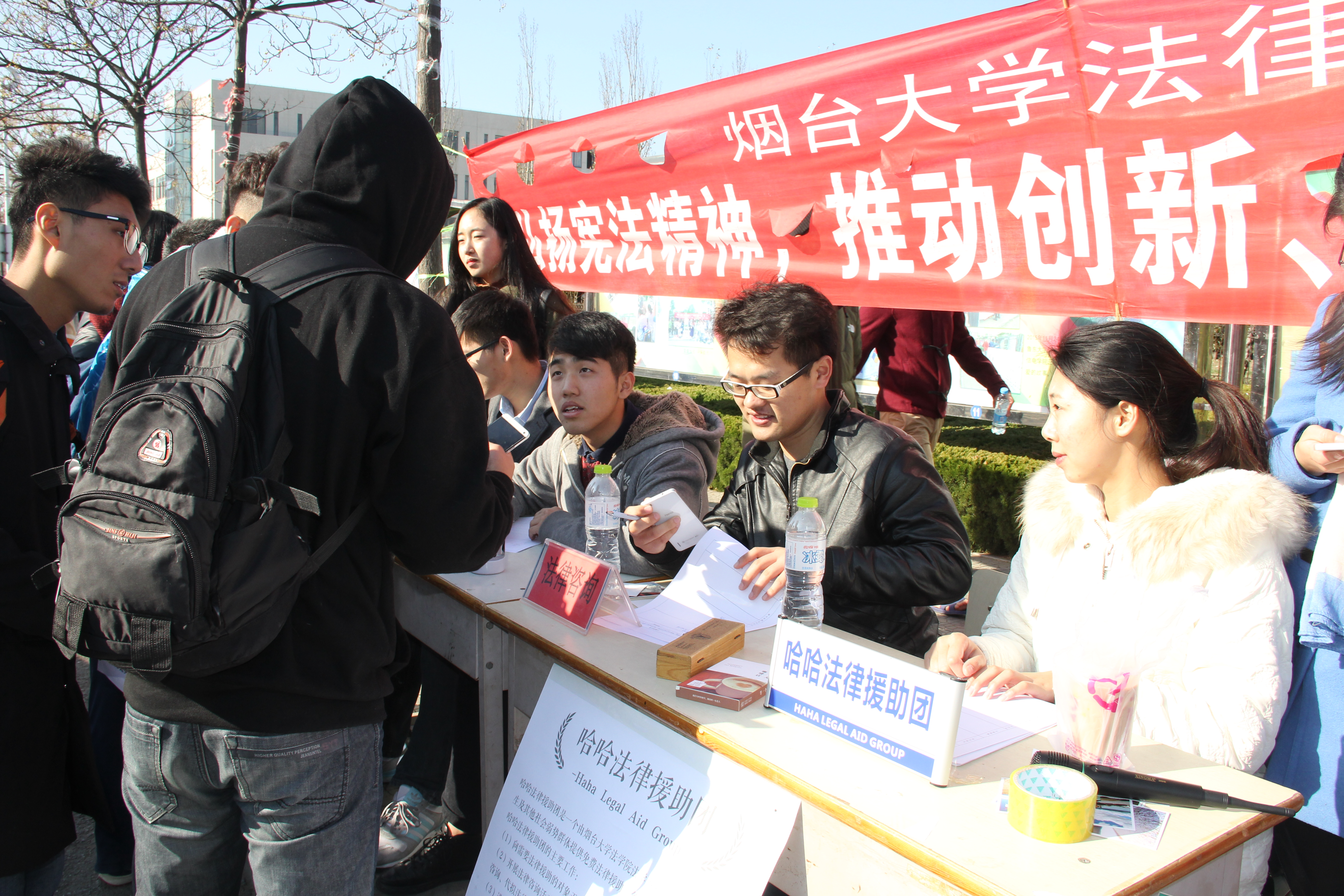 围绕“弘扬宪法精神,推进创新·协调·绿色·开放·共享发展”主题,开展了丰富多彩、形式多样的大学生普法宣传活动。