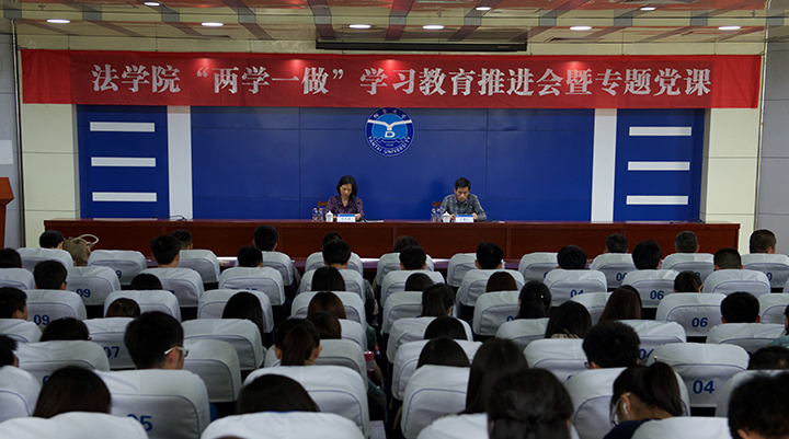 为推进“两学一做”学习教育工作深入开展,尼克成人网 于5月25日下午在逸夫厅召开“两学一做”学习教育推进会,并举行专题辅导党课。尼克成人网 党总支书记范李瑛主持,学院全体教工党员、学生党员和入党积极分子以支部为单位参加了推进会和专题辅导党课。