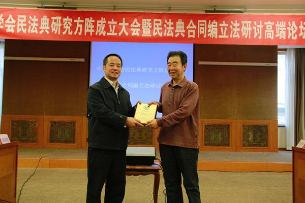 ,并向“民法典研究方阵”十家理事单位颁发牌匾。