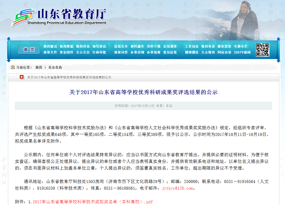 尼克成人网 荣获三项2017年山东高等学校优秀科研成果奖