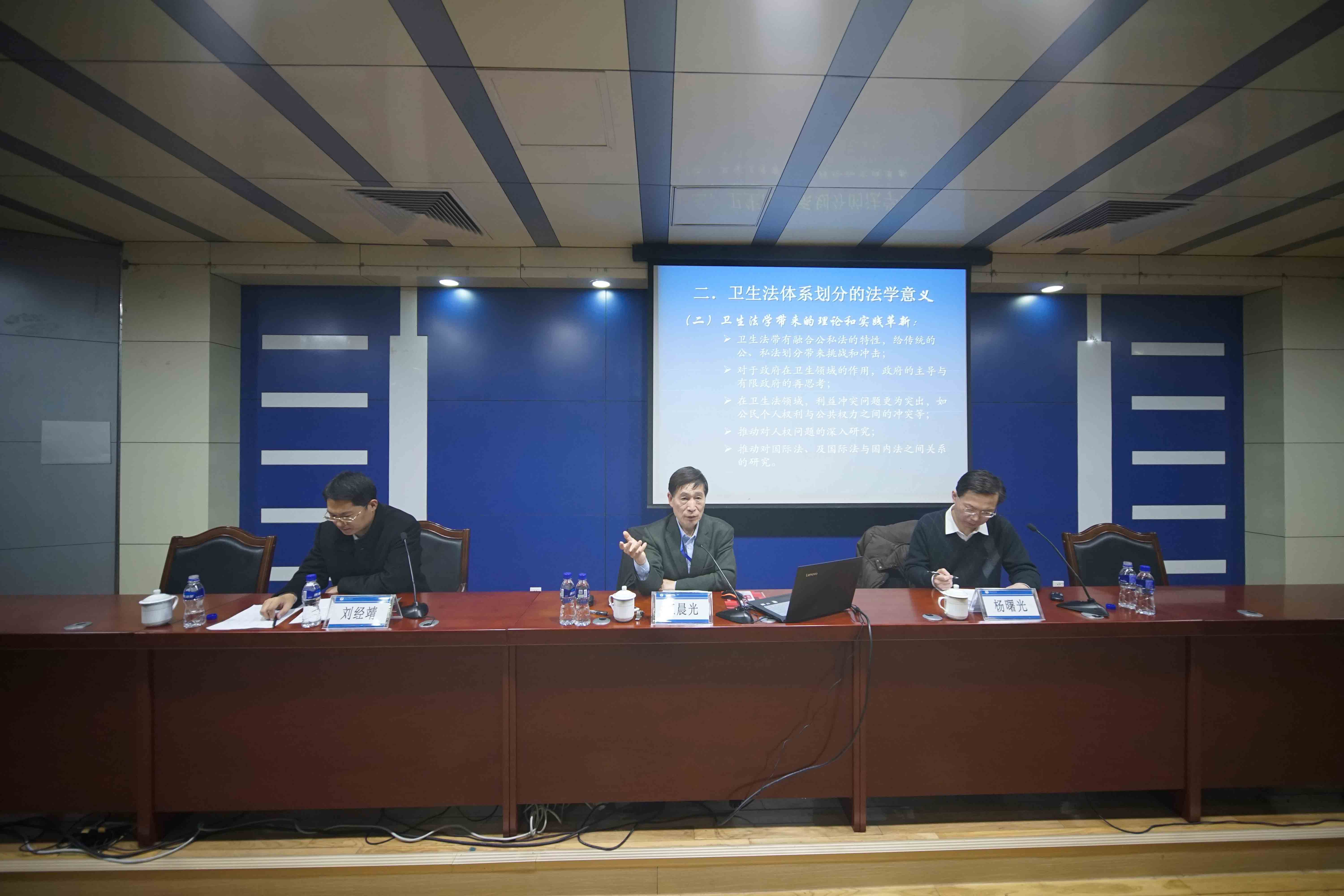 本次讲座分为“健康权”和“政府职责”、“健康中国和卫生法制建构”三大部分。王晨光教授首先对“健康权”进行阐释,他比较了各个国家宪法对保障健康权的规定,并就卫生法领域的健康权与民法领域的健康权以及生命权进行区分。随后,王教授就“健康领域的政府职责”发表了自己的观点。他通过数据对比让同学们直观地感受到了我国政府在健康领域投入的不足,并且对政府在医疗卫生领域的负面清单进行了列举。在卫生法制构建方面,他指出,“健康权是卫生法学的核心概念,卫生法学的划分具有的理论和实践意义,卫生法的特性决定政府职能的必要性“,并提出“健康入万策---把健康权融入社会发展”的必要性。最后,杨曙光副教授做精彩点评,他指出,政府要敢于负责,勇于担当,法定职责必须为,要避免立法不作为和技术不作为。同时,对于严重的医疗事件,要“行刑衔接”以应对政府不作为行为。