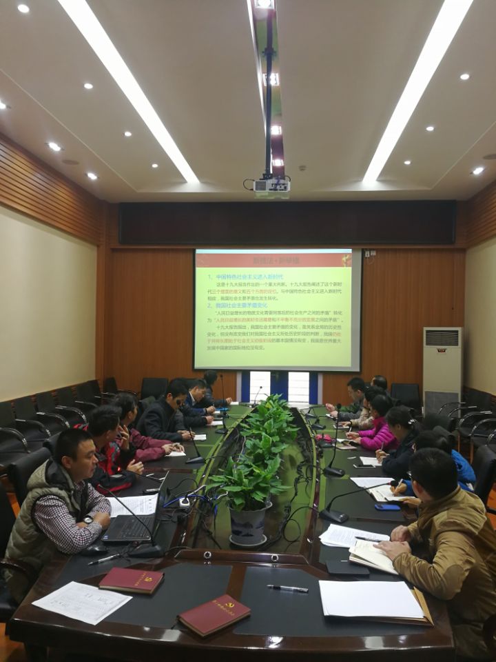 会前教工党支部通过党员微信群转发了习近平总书记十九大报告全文,会上支部书记杨利军同志通过PPT解读了《决胜全面建设小康社会 夺取新时代中国特色社会主义伟大胜利--习近平同志在中国共产党第十九次全国代表大会上的报告》提出的十五条新提法和新举措,使全体党员充分认识到了党的十九大的重大意义,准确把握核心要义。随后教工党支部以党小组为单位集体学习了《中国共产党第十九次全国代表大会关于< 中国共产党章程(修正案)>的决议》。