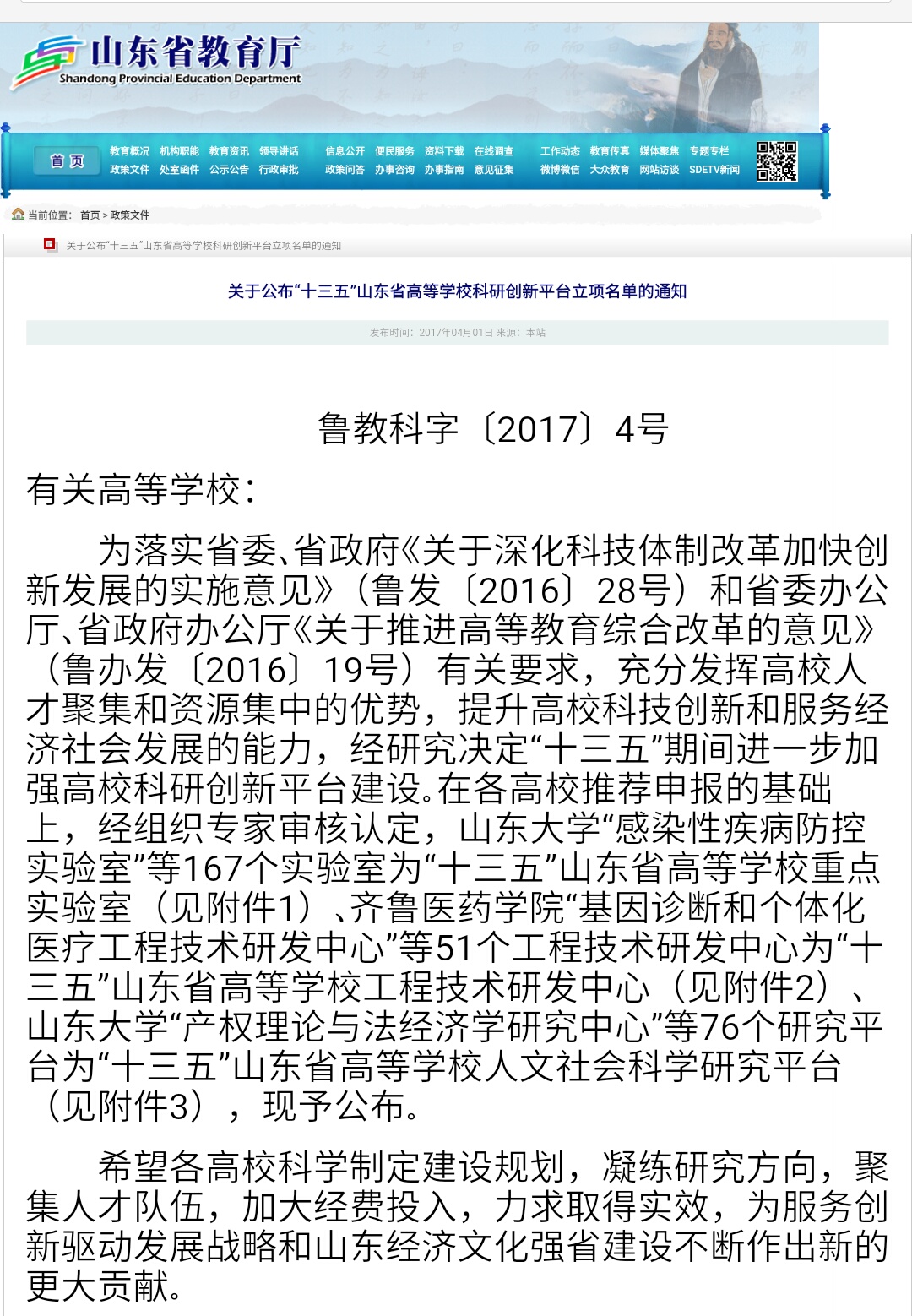 近日,山东省教育厅公布了“十三五”山东省高等学校科研创新平台立项名单(鲁教科字[2017]4号),尼克成人网