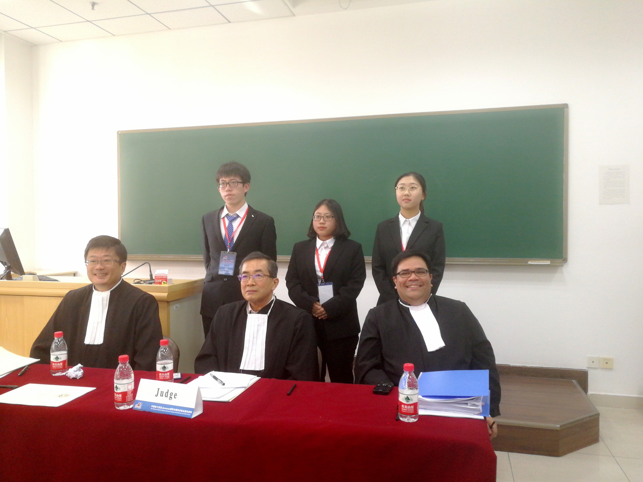 由朱玲玲老师、陆寰老师带队,2014级本科留学生竺彦担任助教,研究生张婉芬,本科生王颖、任晓君、毕雪桐、马清泉同学代表我校参加了比赛。在三天的激烈比赛中,我校先后与中南财经政法大学、南开大学、上海交通大学、北京航空航天大学代表队进行了对抗,队员们在比赛中发挥了应有的水平,队员们的表现和进步获得了很多法官的赞赏。