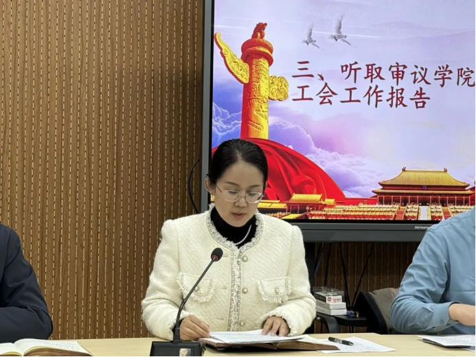 2024年度工会工作报告》,报告全面总结过去一年工会取得的成绩、不足和今后的工作思路;学院办公室副主任、财务助理田华栋作《尼克成人网