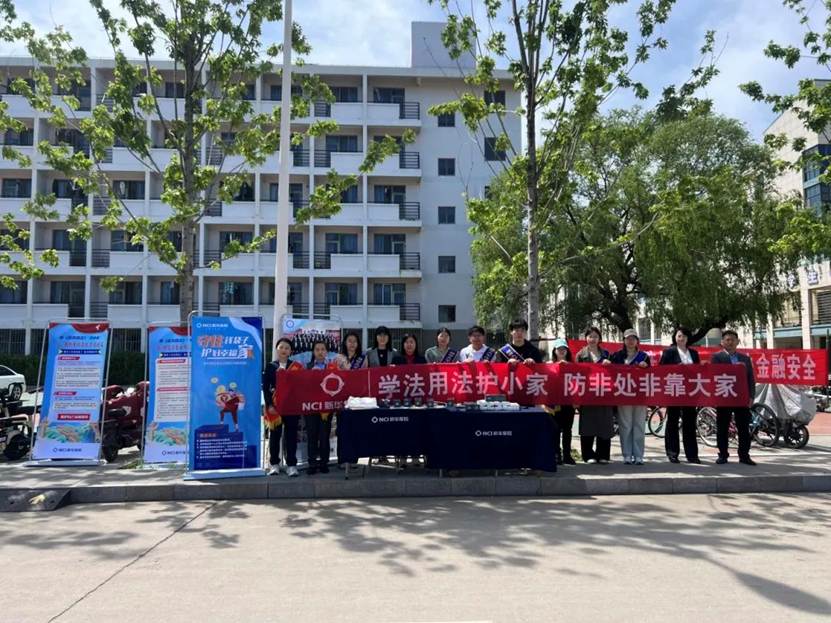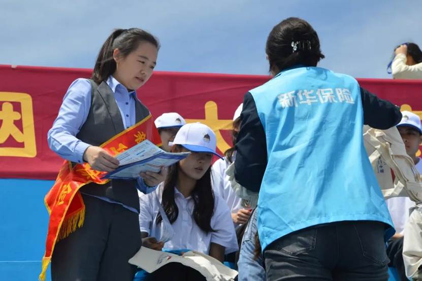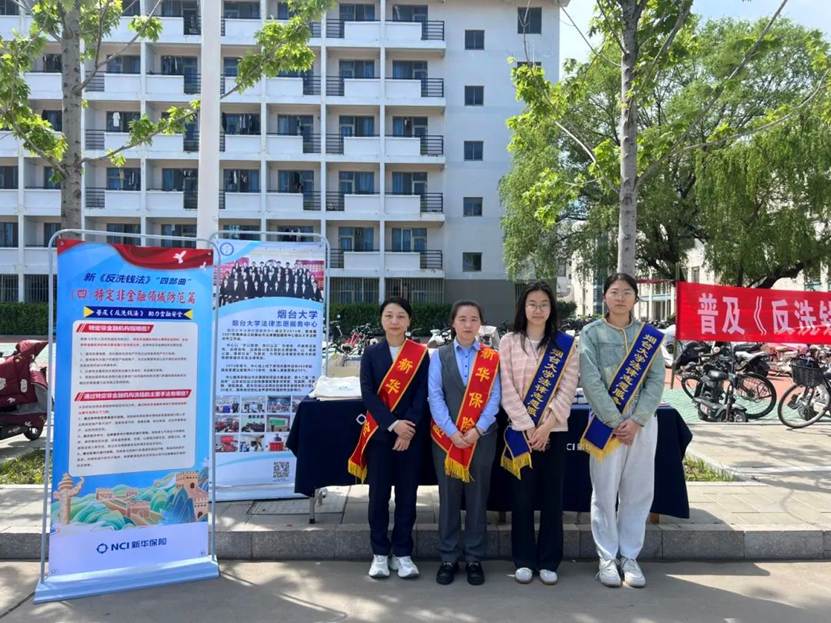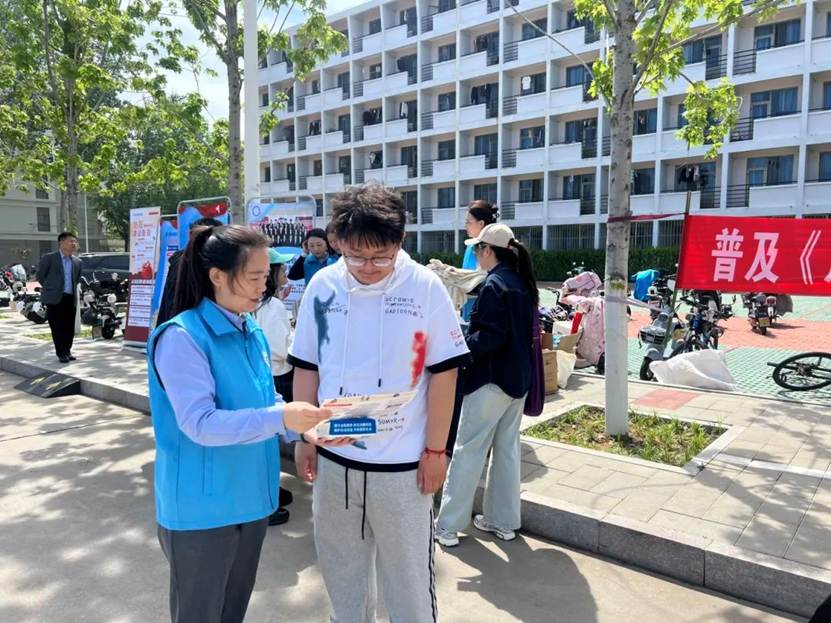 活动当日,学院青年志愿者们与新华保险工作人员们一起,在学校主干道沿线搭建宣传展台。整齐摆放的普法资料、主题鲜明的海报展板吸引了众多同学驻足围观。