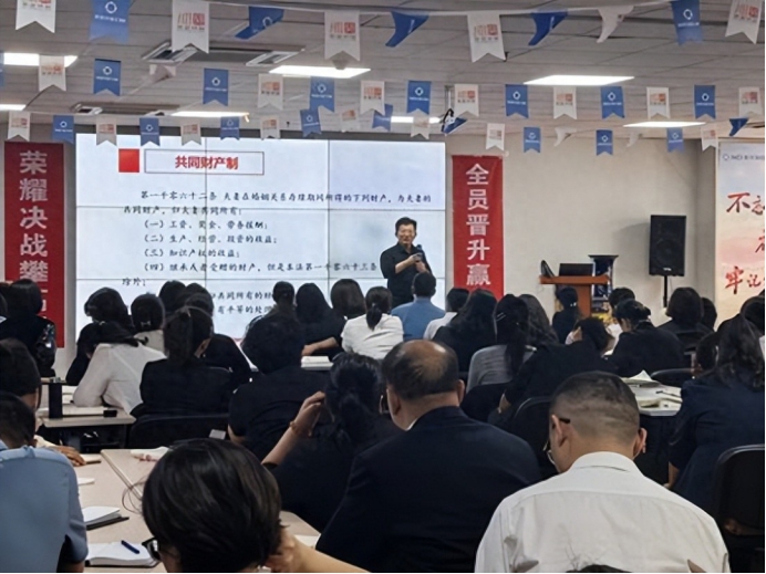张龙教授应邀为新华保险业务团队开展主题为“两口子那点钱”的法律专题知识讲座。聚焦婚姻财产、财富传承等社会热点问题,张龙教授用案例+干货,为从业人员提高专业素养,服务客户能力注入了坚实的“法力量”。