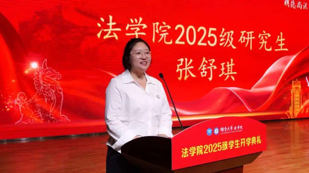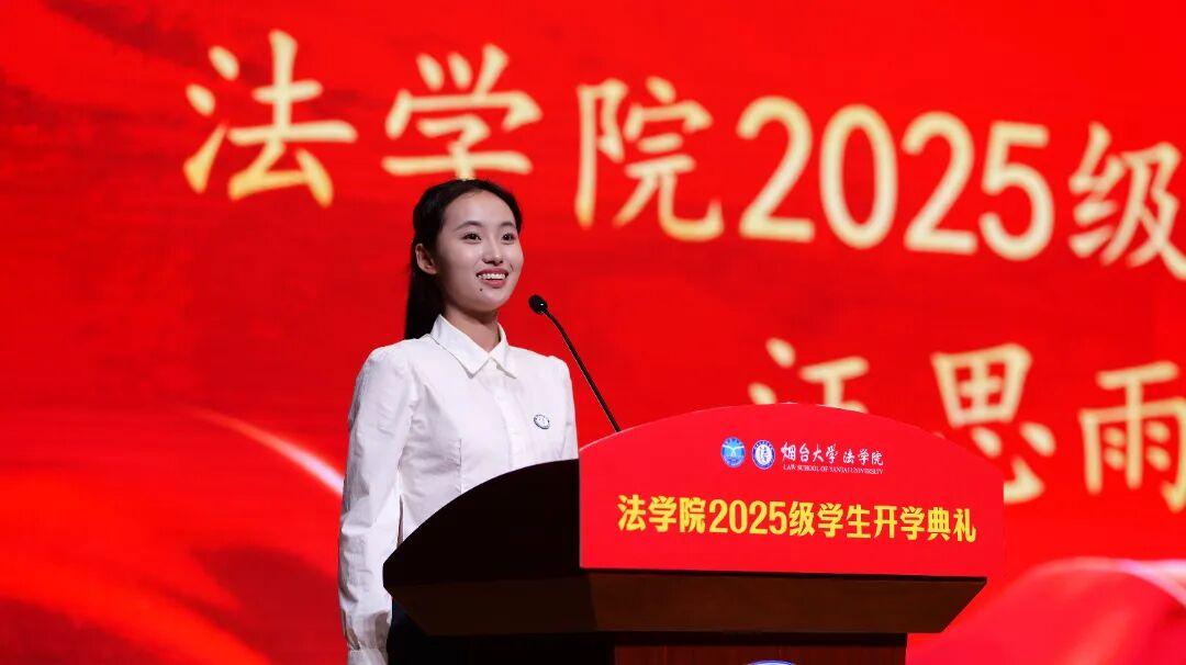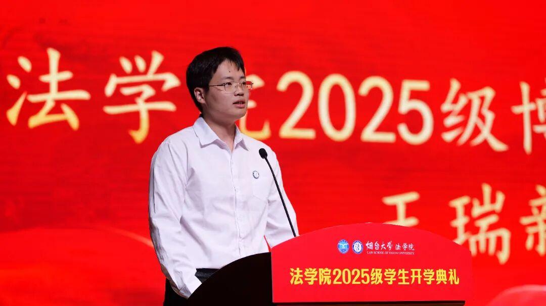 博士研究生、硕士研究生、本科生新生代表依次登台发言。代表们分享了对法学专业的认知与期待,表达了未来勤奋学习、追求卓越,努力成为优秀的烟大法律人的决心。
