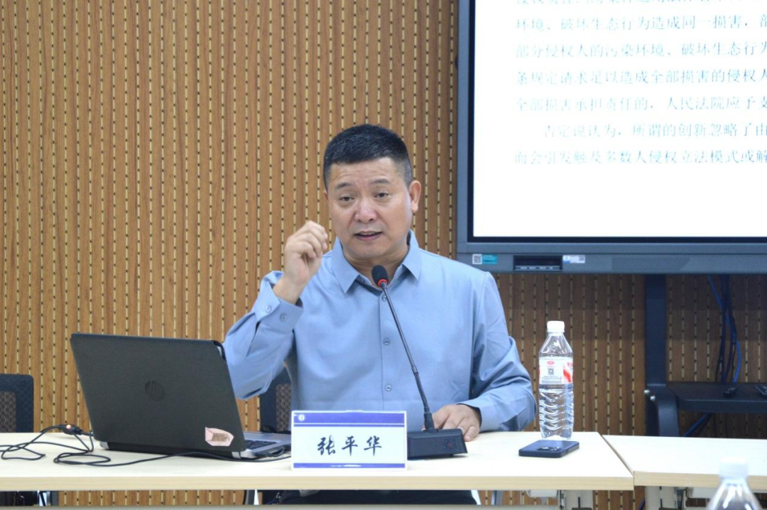 讲座开始后,张平华教授以《民法典》为背景,系统梳理了我国侵权连带责任从《民法通则》到《侵权责任法》,再到《民法典》的制度演进历程。张教授指出,早期立法存在循环定义、类型缺失等问题,《民法典》确立了“连带责任法定原则”标志着该制度走向成熟。张教授强调审判实践中应严格遵循法定原则,防止任意扩张连带责任,尤其要警惕司法解释创设“部分连带责任”等突破现行法的现象。紧接着,张教授结合高空抛物、网络侵权、机动车挂靠等典型场景,剖析了特殊侵权中连带责任的适用边界,并深入探讨了补充责任与不真正连带责任的构造逻辑。最后,张教授提出应在民商合一的体系下区分民事与商事领域对连带责任的不同需求,构建以“按份责任为原则、连带责任为例外”的多数人侵权责任类型序列,推动法律解释的体系化与精细化。