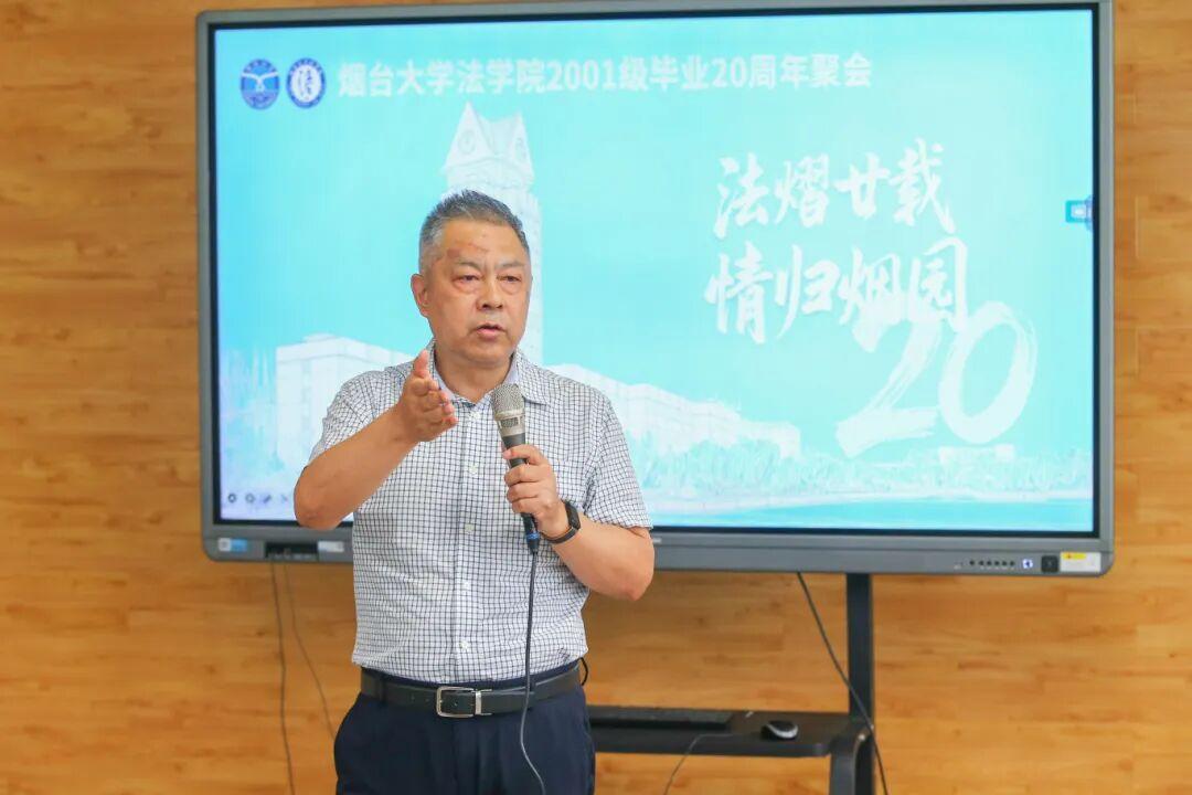 在校友交流环节,返校活动总负责人赵华伟校友介绍了本次活动的筹备和组织情况,俞雅楠、甄景善、刘若谷、毕小芳、曹钊庆和张敬波等校友代表2001级的6个班级分别发言,分享了各自毕业20年来的工作、生活感悟,表达了对母校和老师们辛勤培育的感激之情。接着,本次为学院捐赠10万元的山东康桥律师事务所高级合伙人张海荣校友,2005年参加西部计划志愿服务期结束后留疆工作至今的梁作坤校友和知名作家、导演、编剧、电商平台“五毛真选”主理人张国臣校友分享了各自精彩的成长经历和对母校的深厚感情。