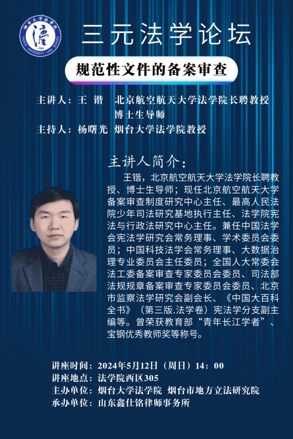 【讲座预告】三元法学论坛:规范性文件的备案审查
