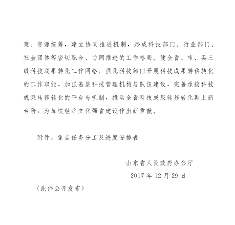 山东省人民政府办公厅关于进一步促进科技成果转移转化的实施意见