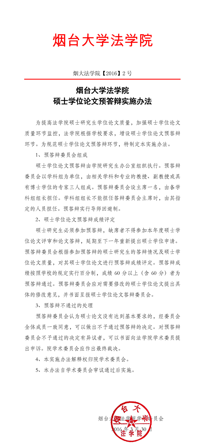 烟大尼克成人网 【2016】2号尼克成人网 硕士学位论文预答辩实施办法