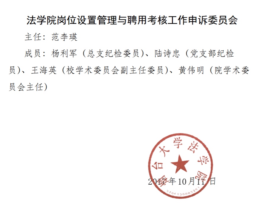 烟大尼克成人网 【2017】6号关于调整尼克成人网 岗位设置管理与聘用考核工作领导小组、工作委员会、申诉委员会的决定